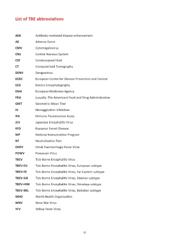 List of TBE abbreviations